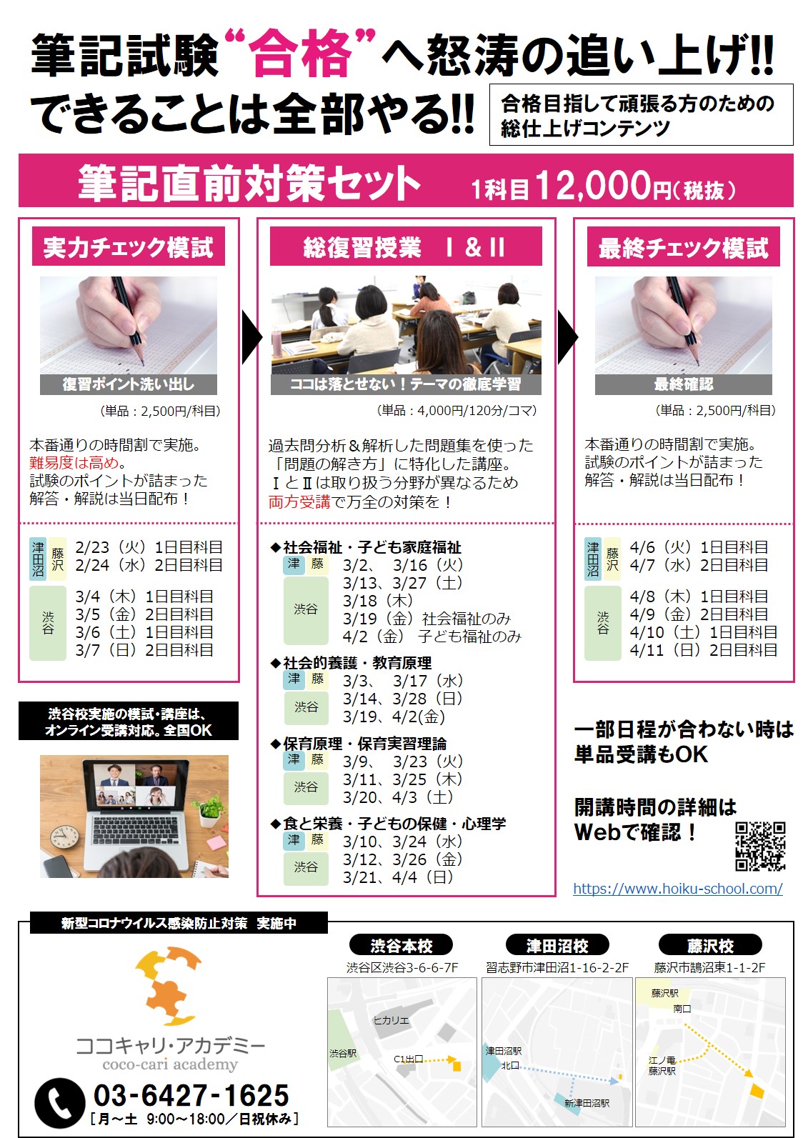 ココキャリ・アカデミーでは、模擬試験・総復習授業(直前対策)を開催します。詳細内容・日程は、下記ページよりご覧ください。